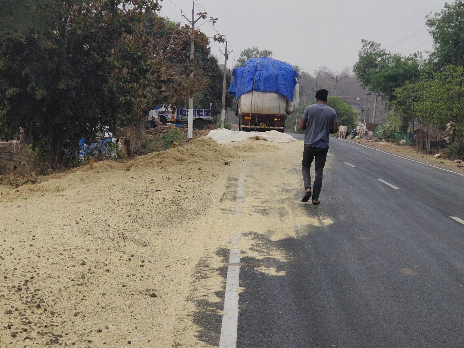 रास्ते पर भूसा फैलने के कारण भोपाल विदिशा हाईवे पर कई दोपहिया वाहन फिसलने से बाल बाल बचे। सुबह के समय कई पशु रोड के किनारे भूसे को चरते हुए नजर आए।