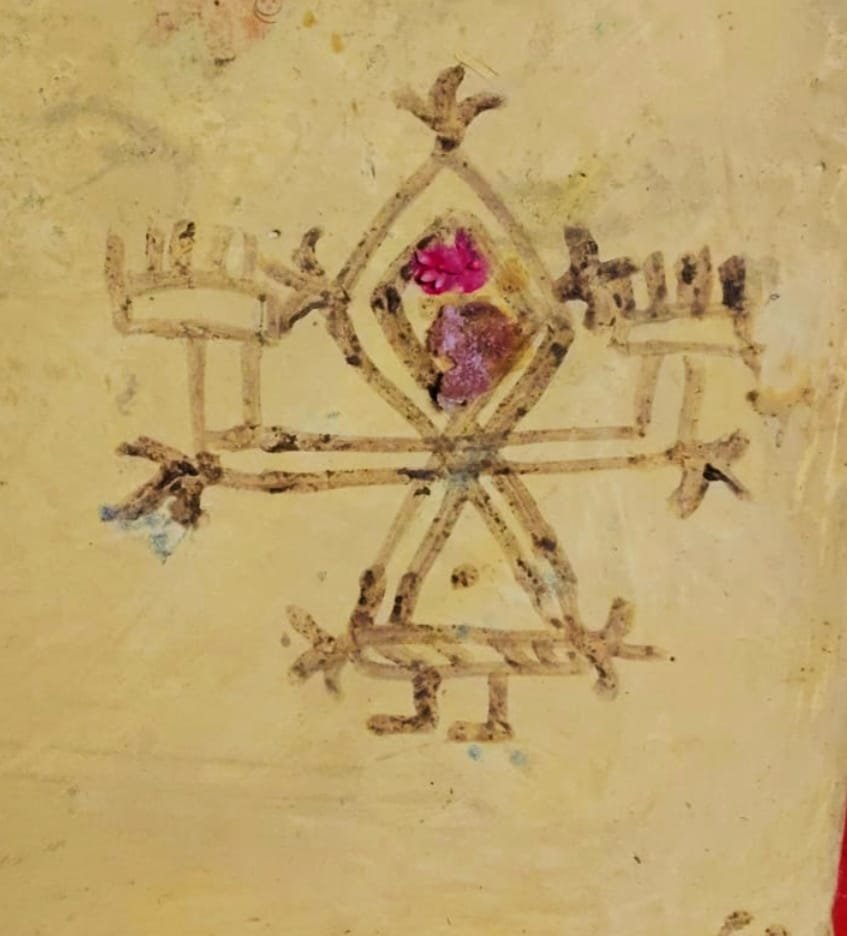 गाय के गोबर से दीवारों पर उकेरे चित्र
