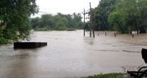 सांचेत में बाढ़ से कई मकानों की दीवारें गिरी और घरों में पानी घुसा पानी