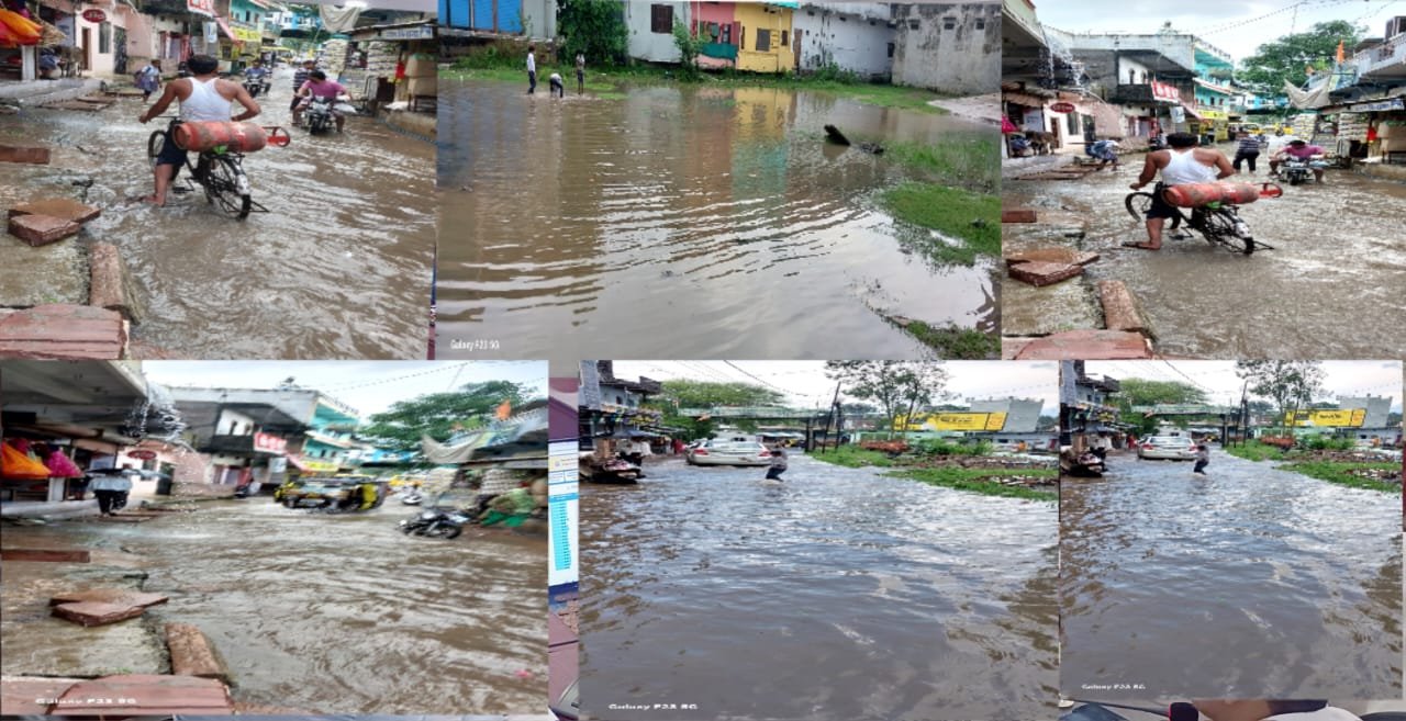 जानकारी के अनुसार आज दोपहर से अचानक भारी बारिश शुरू हो गई हालांकि इस बारिश से किसानों की धान की फसल को एवं सोयाबीन को लाभ मिला तो दूसरी ओर नगर की सडके लबालब दिखाई दी लोगों का चलना दूभर हो गया वहीं स्कूली बच्चों को खासी परेशानी उठानी पड़ी हमेशा की तरह स्तूप रोड एवं रामलीला रोड पर तेज गति से पानी बह निकला दो से तीन फिट पानी तेज रफ्तार से बहा नगर की अंदरुनी गंदगी सडकों पर आ गई ।हालांकि इस नगर से निकलने वाले बारिश के पानी निकासी हेतु राष्ट्रीय राजमार्ग एवं स्थानीय प्रशासन द्वारा करोड़ों रुपए की लागत से नाले निर्माण तो करा लिए गये परन्तु अंदरूनी सडकों पर लबालब पानी भरने से खासी समस्या खडी हो गई ।कुछ तो नगर की अव्यवस्था एवं अतिक्रमण की समस्या ने समस्या खडी कर दी ।हालांकि विभिन्न शहरों में अतिक्रमण की कार्रवाई समय समय पर होती रही परन्तु इस नगर में अतिक्रमण प्रशासन पर पूरी तरह हावी रहा जिसका खामियाजा लोगों को भुगतना पड़ रहा है परन्तु प्रशासन बेखबर बना बैठा है ।जिसका खामियाजा लोग भुगत रहे है ।