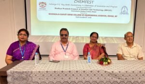 कार्यक्रम के प्रथम सत्र में राष्ट्र निर्माण में आचार्य प्रफुल्ल चंद्र रे का योगदान पर डॉ. सविता खरे, प्रोफेसर एंड डीन, स्कूल ऑफ केमिकल साइंसेस, देवी अहिल्या विश्वविद्यालय द्वारा व्याख्यान दिया गया। प्राचार्य, डॉ. आनंद निघोजकर महाराजा रणजीत सिंह कॉलेज ऑफ़ प्रोफेशनल साइंसेज इंदौर, डायरेक्टर, डॉ. इरा बापना, महाराजा रणजीत सिंह ग्रुप ऑफ़ इंस्टीट्यूशन ,इंदौर के द्वारा उन्हें सम्मानित किया गया।