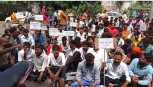आयुष्मान कार्ड होने के बाद भी रुपए मांगे, निजी जनसेवा अस्पताल के सामने हिंदू युवा संगठन के कार्यकर्ताओं का धरना