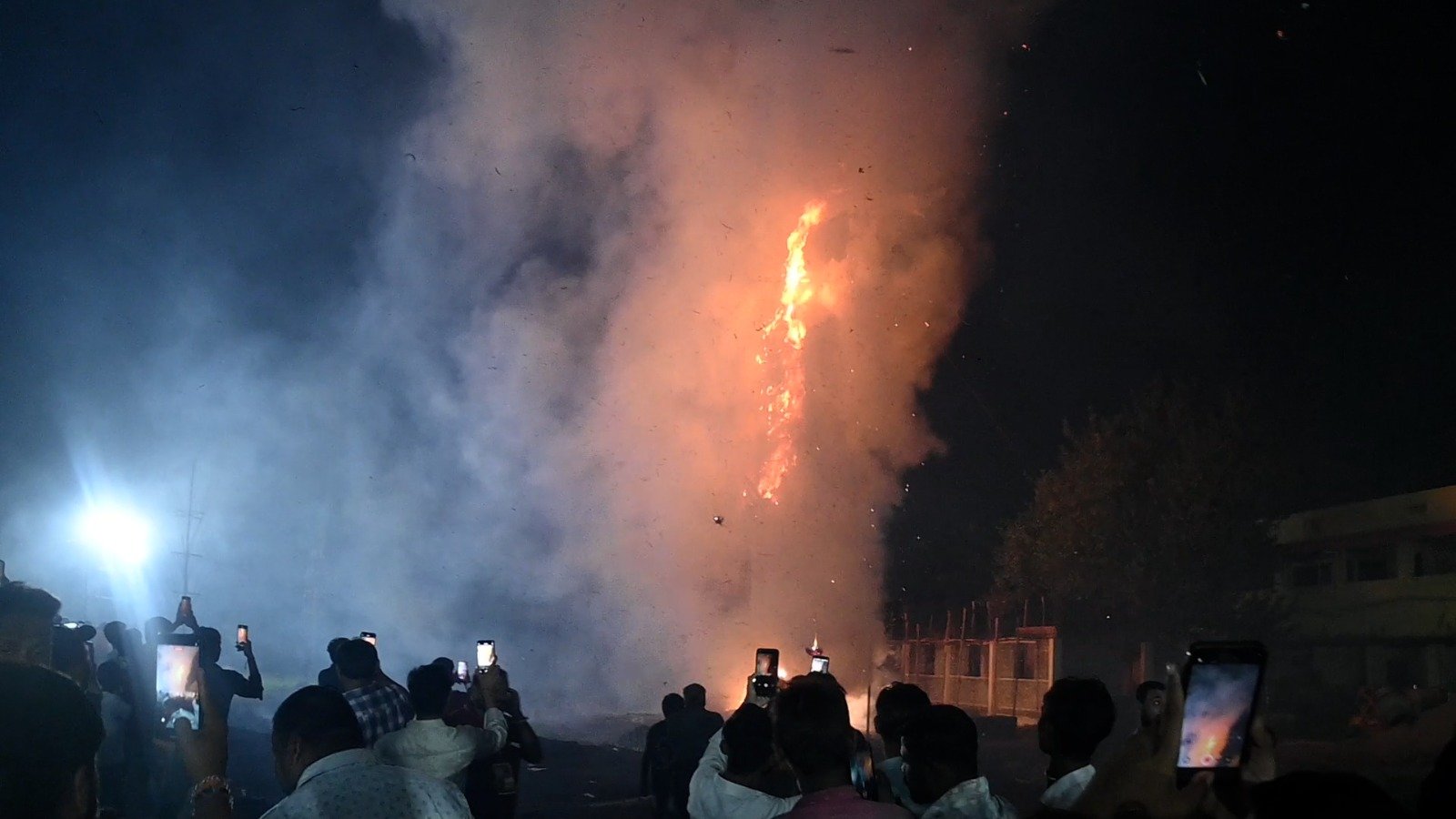 – आतिशबाजी के साथ रावण के विशालकाय पुतले का दहन