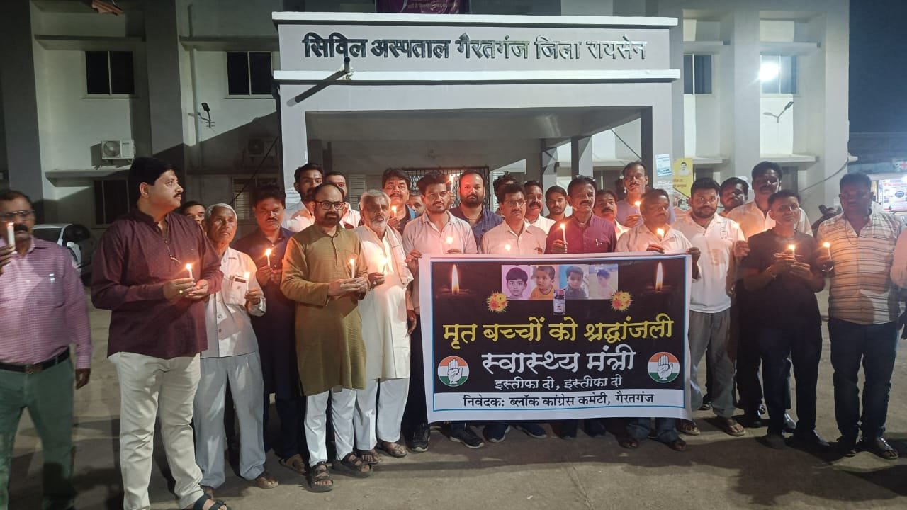 मध्य प्रदेश के छिंदवाड़ा जिले में जहरीली सिरप पीने से हुई बच्चों की मौत के विरोध में ब्लॉक कांग्रेस कमेटी, गैरतगंज ने कैंडल मार्च निकालकर प्रदेश सरकार के प्रति अपना गुस्सा जाहिर किया। कांग्रेस कार्यकर्ताओं ने इस घटना को प्रदेश सरकार की घोर लापरवाही बताते हुए स्वास्थ्य मंत्री से तत्काल इस्तीफे की मांग की।