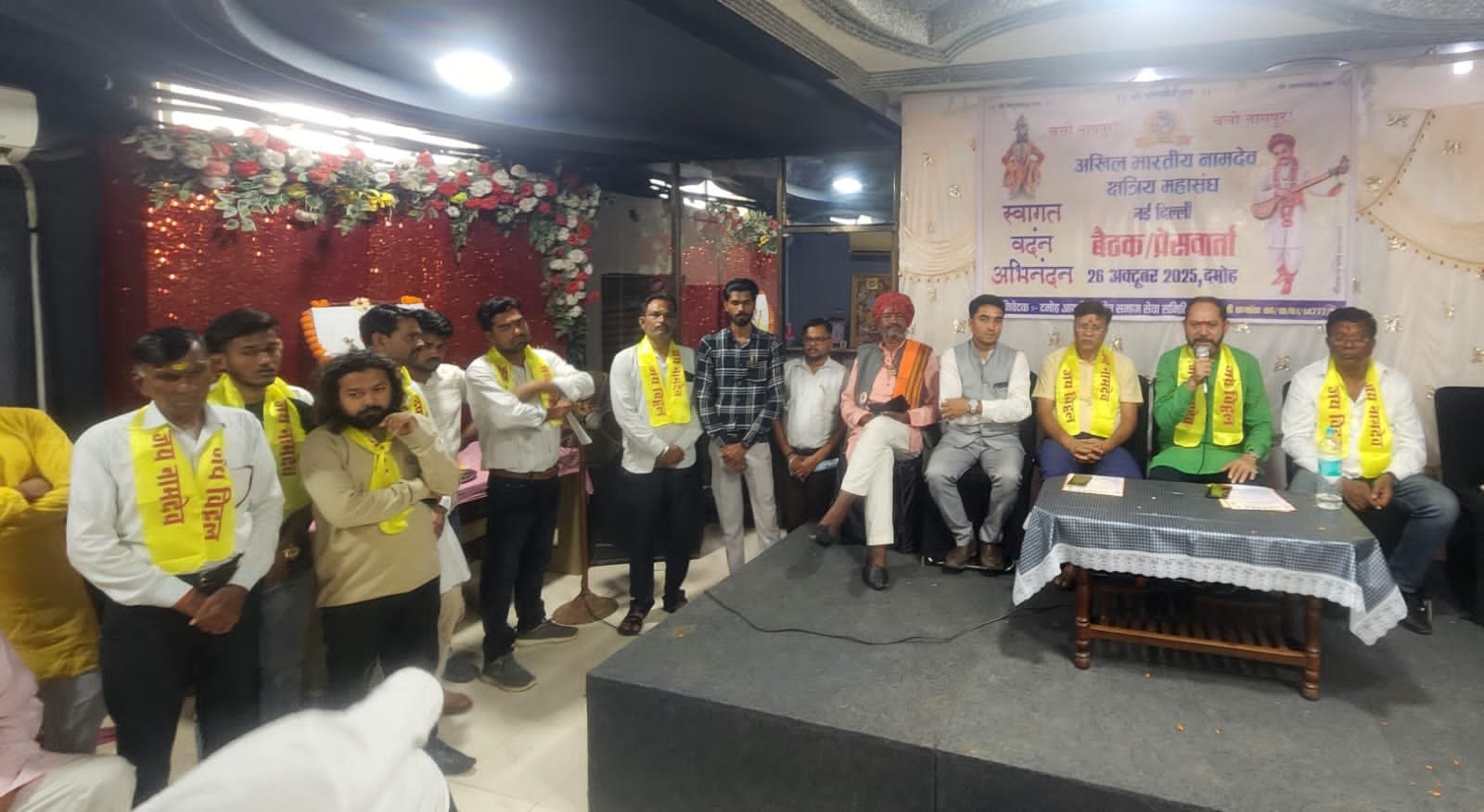 नामदेव समाज की जिला स्तरीय बैठक का आयोजन स्थानीय निजी होटल में किया गया जिसमें अखिल भारतीय क्षत्रिय नामदेव महासभा नई दिल्ली नामदेव समाज के राष्ट्रीय अध्यक्ष भास्कर राव टोंम्पे, राष्ट्रीय समन्वयक अनंत जांगजोड, नामदेव विकास परिषद के अध्यक्ष अरुण नामदेव का आगमन हुआ। बैठक उपरांत मंचासीन अतिथियों द्वारा पत्रकार वार्ता को संबोधित किया।