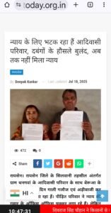 न्याय के लिए भटक रहा हे आदिवासी परिवार,दबंगों के हौसले बुलन्द,अभी तक नहीं मिला न्याय शीर्षक से 18जुलाई को प्रकाशित हुआ था समाचार