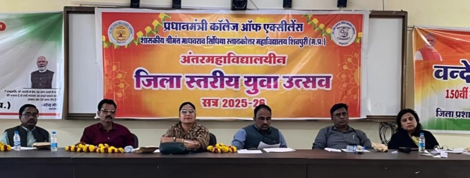 शासकीय स्नातकोत्तर महाविद्यालय प्रधानमंत्री कॉलेज ऑफ एक्सीलेंस में सत्र 2025- 26 का जिला स्तरीय महविद्यालयींन युवा उत्सव आयोजित किया गया। इस युवा उत्सव का शुभारंभ विवेकानंद सभागार मे महाविद्यालय प्राचार्य प्रो पवन कुमार श्रीवास्तव एवं अतिथियों शैलजा लवांगीकर, सुनील व्यास, रंजीत गुप्ता द्वारा माँ सरस्वती एवम स्वामी विवेकानंद की प्रतिमा पर माल्यार्पण एवम दीप प्रज्वलित कर किया गया। युवा उत्सव में रंगोली वक्तृत्व कला, वाद विवाद, क्विज एवम पोस्टर मेकिंग प्रतियोगिता का आयोजन किया गया। वक्तृत्व कला में मंजरी शर्मा, वाद विवाद में पक्ष में अनामिका शर्मा, विपक्ष में मंजरी शर्मा ने प्रथम स्थान प्राप्त किया। जो शासकीय स्नातकोत्तर महाविद्यालय शिवपुरी की छात्राएं हैं। वक्तृत्व कला एवम वाद विवाद प्रतियोगिता के जज शैलजा लवंगीकर, सुनील व्यास, रंजीत गुप्ता रहे। रंगोली में करेरा महाविद्यालय की छात्रा शिवानी झा ने प्रथम स्थान प्राप्त किया रंगोली की प्रतियोगिता के जज वंदना शिवहरे, ज्योति गुप्ता आदि रहे। जबकि क्विज़ प्रतियोगिता में शासकीय महाविद्यालय दिनारा की टीम ने प्रथम स्थान प्राप्त किया।करेरा महाविद्यालय की छात्रा कु अश्विनी जाटव ने ऑन द स्पॉट पेंटिंग में प्रथम स्थान प्राप्त किया इस प्रतियोगिता के जज डेविड शर्मा, कु काजल जैन, एवं श्रीमती आकृति जायसवाल रहे। इन विधाओं को सम्पन्न कराने में प्राचार्य प्रो पवन कुमार श्रीवास्तव, प्रो जी पी शर्मा, प्रो ममता रानी, प्रो दिग्विजयसिंह सिकरवार, प्रो शालिनी राय, प्रो जे पी श्रीवास्तव, प्रो प्रमोद चिडार, प्रो जितेंद्र तोमर, प्रो महेश प्रसाद, प्रो अनुराधा सिंह, प्रो नैंसी मौर्य, प्रो रामजीदास राठौर, प्रो शुभा वार्ष्णेय, प्रो रश्मि, ने सक्रिय योगदान किया। महाविद्यालय परिवार सभी प्रतिभागी विद्यार्थियों के उज्ज्वल भविष्य की कामना करता है।