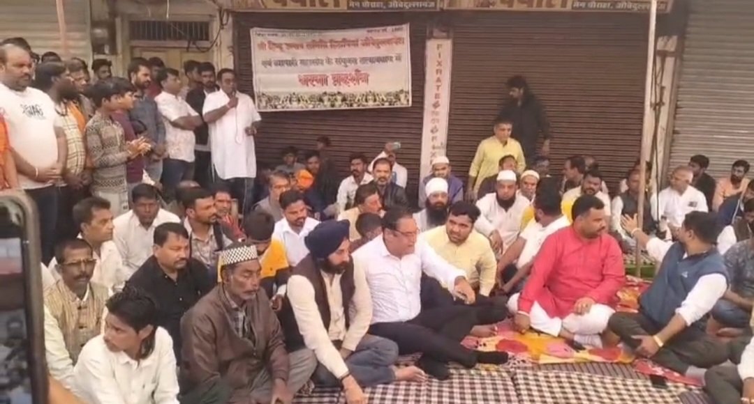दो गुटों में बैठकर औबेदुल्लागंज में उक्त विभस्थ घटना के विरोध में घरना प्रदर्शन किया गया।सभी जनप्रतिनिधि संग व्यापारियों ने धरने में समल्लित होकर अपनी बातें रखिँ गईं।