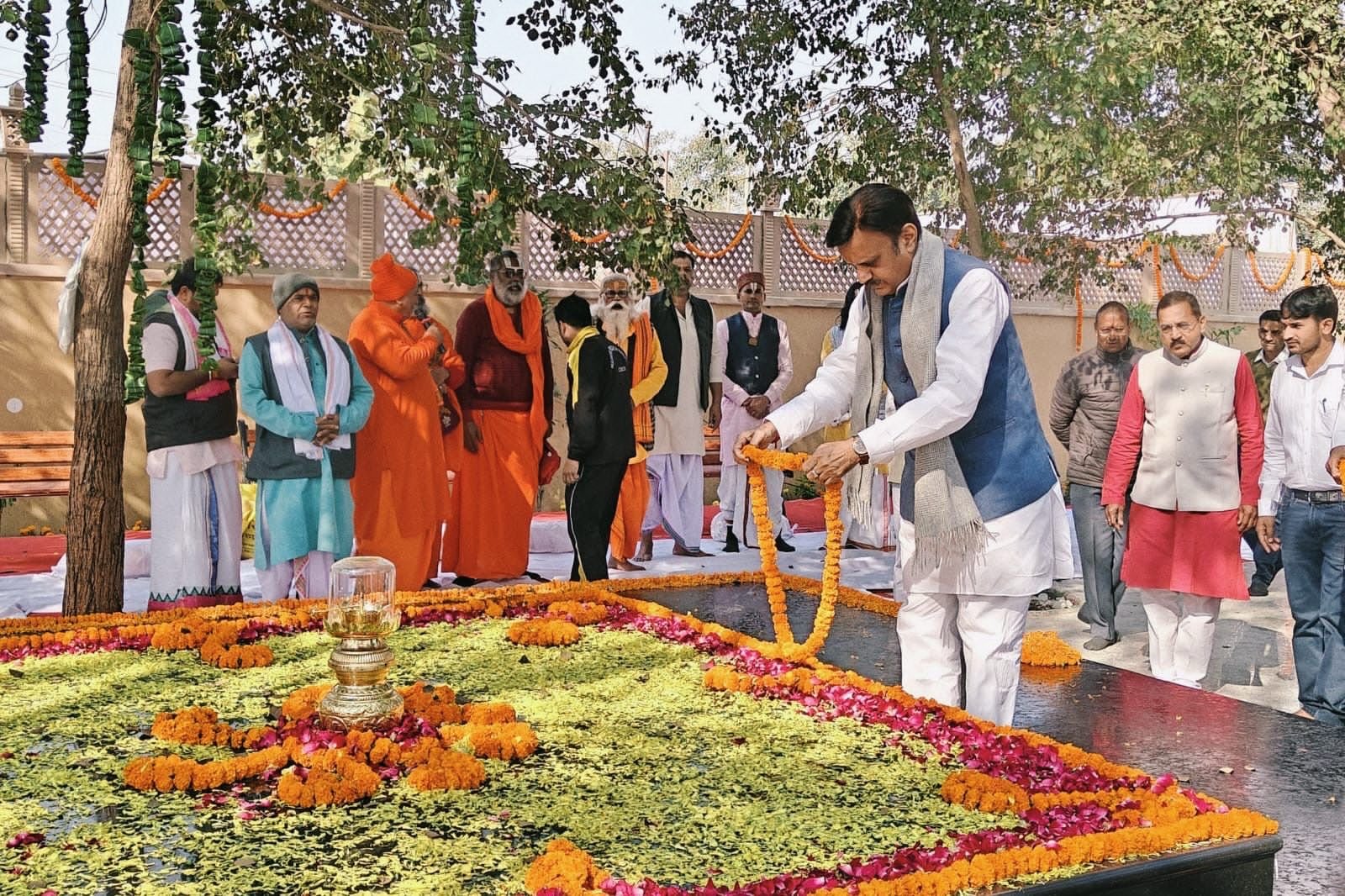 उप मुख्यमंत्री ने भावपूर्ण शब्दों में अपने पिताजी के दिखाए मार्ग पर चलने का संकल्प व्यक्त करते हुए कहा कि उनके द्वारा स्थापित मानवीय मूल्यों को आगे बढ़ाना ही उनके प्रति सच्ची श्रद्धांजलि है। इस अवसर पर उप मुख्यमंत्री ने उपस्थित संत समाज को श्रद्धा और सम्मान के प्रतीक स्वरूप श्रीफल एवं शॉल भेंट कर उनका आशीर्वाद प्राप्त किया तथा पूज्य पिताजी की स्मृति में पौधारोपण कर प्रकृति के प्रति अपनी कृतज्ञता प्रकट की।