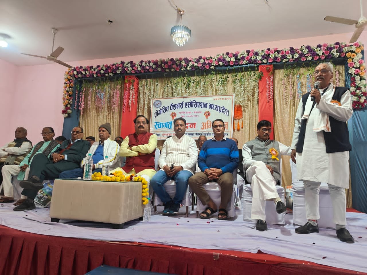 कार्यक्रम में सभी पेंशनर्स का शालश्रीफल , पुष्पमालाओं से अभिवादन एसोसिएशन के अध्यक्ष कृष्णकुमार शर्मा एवं वरिष्ठ पदाधिकारी महेन्द्रपाल सिंह यादव , मंशाराम पंथी , घासीराम राज , हफीज अली , बीएल गौर , राजेंद्र शिल्पकार , एसएस ठाकुर , हरिसिंह ठाकुर , जेपी शर्मा , विनोद चौबे , रविशंकर पंथी इत्यादि के द्वारा किया गया।
