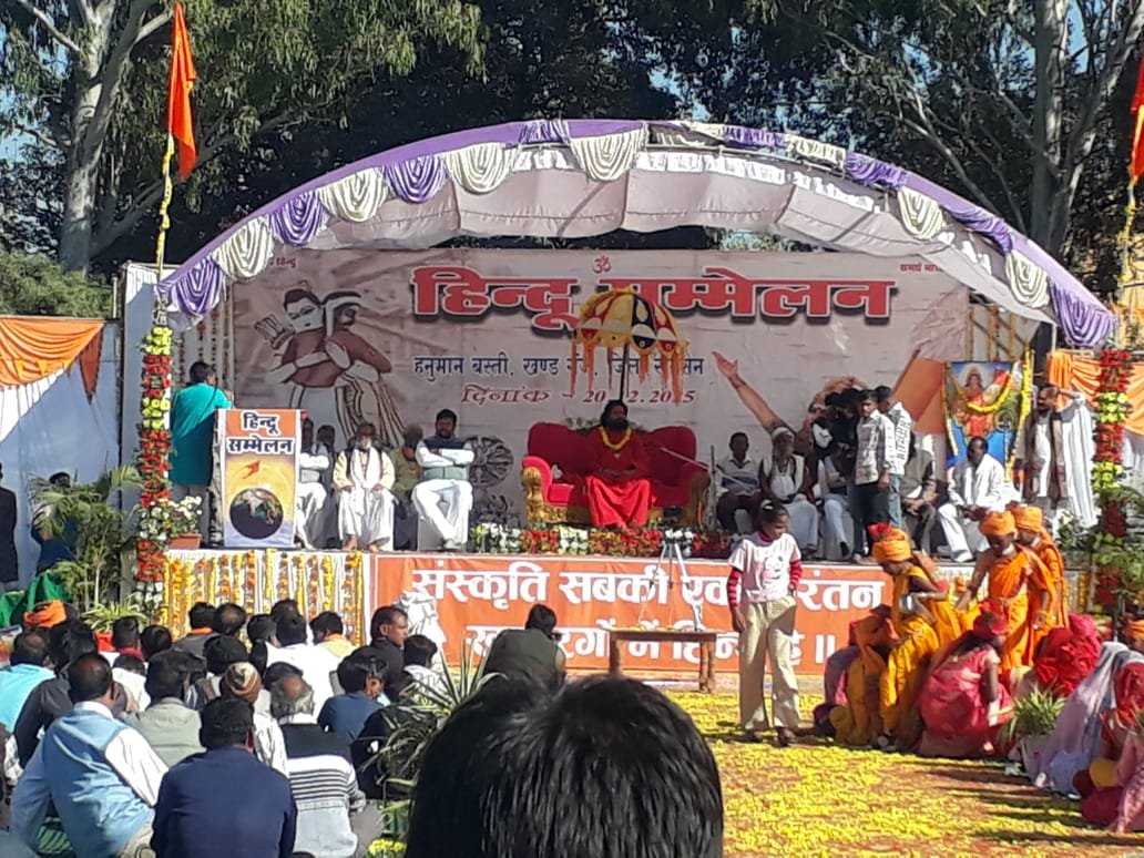 नगर के हनुमान बस्ती में शनिवार को विशाल हिंदू सम्मेलन आयोजन किया गया। कार्यक्रम के प्रारंभ में नगर के विभिन्न क्षेत्रों से छोटी छोटी कन्याओं एवं महिलाओं ने कलश यात्रा निकाली, आयोजन स्थल पर हवन का आयोजन हुआ जिसमें हिन्दू सनातनी ने आहुति छोड़ी।