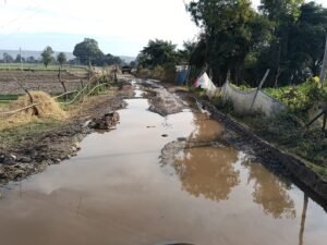 हमारे गांव में 9महीने पहले ही सड़क का निर्माण कार्य हुआ है। 9 महीने में ही रोड में गहरे गहरे गड्ढे हो गए। रोड बनाने में ठेकेदार ने भ्रष्टाचार किया है जिसकी शिकायत हम जनसुनवाई में करेंगे।