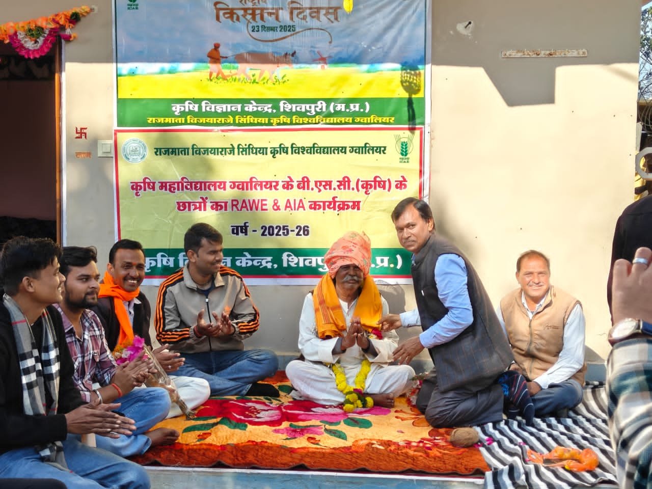 देश के प्रधानमंत्री रहे चौधरी चरण सिंह की जयंती के अवसर पर मनाया जाने वाला राष्ट्रीय किसान दिवस 23 दिसम्बर को कृषि विज्ञान केंद्र शिवपुरी के प्रमुख डॉ पुनीत कुमार के निर्देशन में रावे छात्रों द्वारा ग्राम पंचायत रातोर में वायोवृद्ध कृषक मांगीलाल धाकड़ को सम्मानित कर कृषक संगोष्ठी के आयोजन के साथ मनाया गया। कृषि छात्रों द्वारा समन्वित कृषि प्रणाली के मॉडल में फसल पशुधन बायोगैस जल संरक्षण के साथ नगदी फसलों की नर्सरी के बारे में जानकारी ली एवं क्षेत्र में प्रसार करने के बारे में बतलाया। इसी क्रम में सृजन संस्था के साथ भी राष्ट्रीय किसान दिवस कोलारस में ग्रामीण महिलाओं एवम कृषकों के साथ मिलकर तकनीकी व्याख्यान के साथ राष्ट्रीय किसान दिवस मनाया गया। जहां घर की बगिया से ही प्राकृतिक खेती शुरू करने के बारे मे आवाहन किया गया। आयोजन में श्री भरत सिंह चौहान जनपद अध्यक्ष कोलारस के साथ जनप्रतिनिधि गण कृषि विज्ञान केंद्र शिवपुरी के वैज्ञानिक डॉ एम के भार्गव डॉ लक्ष्मी एवं कृषि छात्रों अभय शर्मा अमन शर्मा निखिल जेतिया एवं गजेंद्र बेसला की सहभागिता रही। उक्त कार्यक्रमों में तीन सैकड़ा से अधिक किसान महिलाओं एवम कृषकों कि सहभागिता रही।