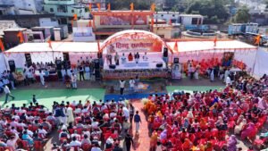 राष्ट्रीय स्वयंसेवक संघ के शताब्दी वर्ष में महाराणा प्रताप बस्ती में आयोजित विशाल हिंदू सम्मेलन में रामनगर , श्यामनगर टेकरी श्रीहनुमान मंदिर एवं अयोध्या नगर श्रीदुर्गा मंदिर से बच्चियों एवं महिलाओं ने कलश यात्राएं निकाली जो दशहरा मैदान कार्यक्रम स्थल पर पहुंची जहां पर विधिविधान से हवन पूजन एवं आहूतियां अर्पित कर कार्यक्रम की शुरुआत भारतमाता की आरती एवं बिरसा मुंडा के जीवन पर आधारित आकर्षक सांस्कृतिक की प्रस्तुति दी गई एवं सेवा भारती के द्वारा महापुरुषों की झांकी प्रदर्शित की गई।