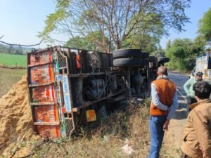 भोपाल–विदिशा स्टेट हाईवे 18 पर स्थित घोड़ापछाड़ पुल के पास उस समय अफरा-तफरी मच गई, जब भूसे से भरा एक 14 चका ट्राला अनियंत्रित होकर सड़क पर पलट गया। गनीमत रही कि इस दुर्घटना में ट्रक चालक और क्लीनर को कोई चोट नहीं आई। दोनों को केवल मामूली चोटें ही आईं हैं। कोई जनहानि भी नहीं हुई