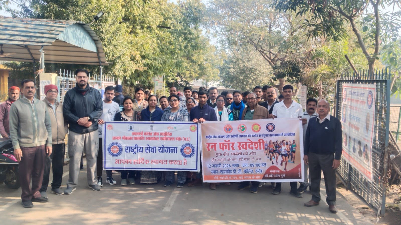 स्वामी विवेकानंद जी की जयंती पर प्राचार्य डॉ आलोक जैन के नेतृत्व में रन फॉर स्वदेशी कार्यक्रम के तहत महाविद्यालय के मुख्य गेट से किल्लाई नाका तक दौड़ आयोजित की गई। इसमें विद्यार्थियों के साथ प्राध्यापकों, सह प्राध्यापक, सहायक प्राध्यापक, अतिथि विद्वान और कर्मचारियों ने बढ़-चढ़ भाग लिया। इस दौरान वंदेमातरम, इंकलाब जिंदाबाद और भारत माता की जय और स्वदेशी जागरण संबंधी नारों से आसमान गूंज उठा।