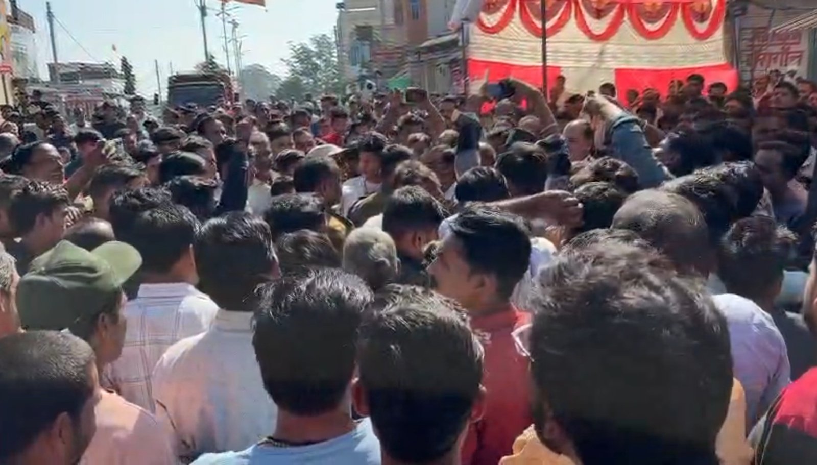 वीरेंद्र जैन ने बताया कि सुबह 10 बजे से आक्रोशित सभी समाजों के लोग थाने के सामने इकट्ठे हो गए और पिछले दो माह में चोरी की 50 से ज्यादा घटनाओं को पुलिस के द्वारा नहीं पकड़े जाने पर अपना गुस्सा जाहिर करते हुए पुलिस की खिलाफ जमकर नारेबाजी की और थाने के स्टाफ को बदलने की बात कही जैन मंदिर से लगभग 5 किलो से अधिक चांदी के 20 छत्र चोरी हो गए थे और कुछ नगदी भी अज्ञात चोर ले गए हैं इसके अलावा छोटी-मोटी चोरियां और खेतों में किसानों की बिजली की मोटरों की चोरियों की रिपोर्ट पुलिस थाने में दर्ज हैं लेकिन एक भी चोर को पुलिस ने पकड़ा नहीं है ।