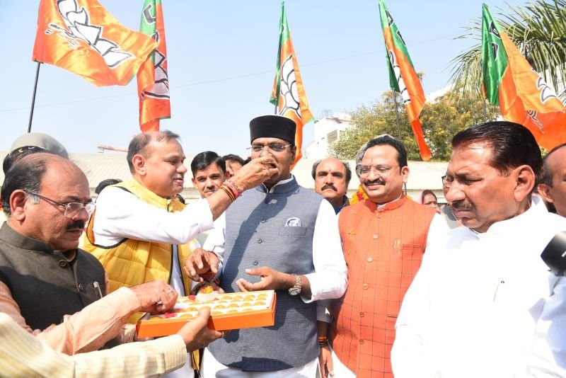 भोपाल। भारतीय जनता पार्टी के नव-निर्वाचित राष्ट्रीय अध्यक्ष  नितिन नबीन  के पदभार ग्रहण के  पर मंगलवार को भाजपा प्रदेश कार्यालय में उत्साह और उल्लास के साथ आतिशबाजी एवं मिष्ठान वितरण कर उत्सव मनाया गया।