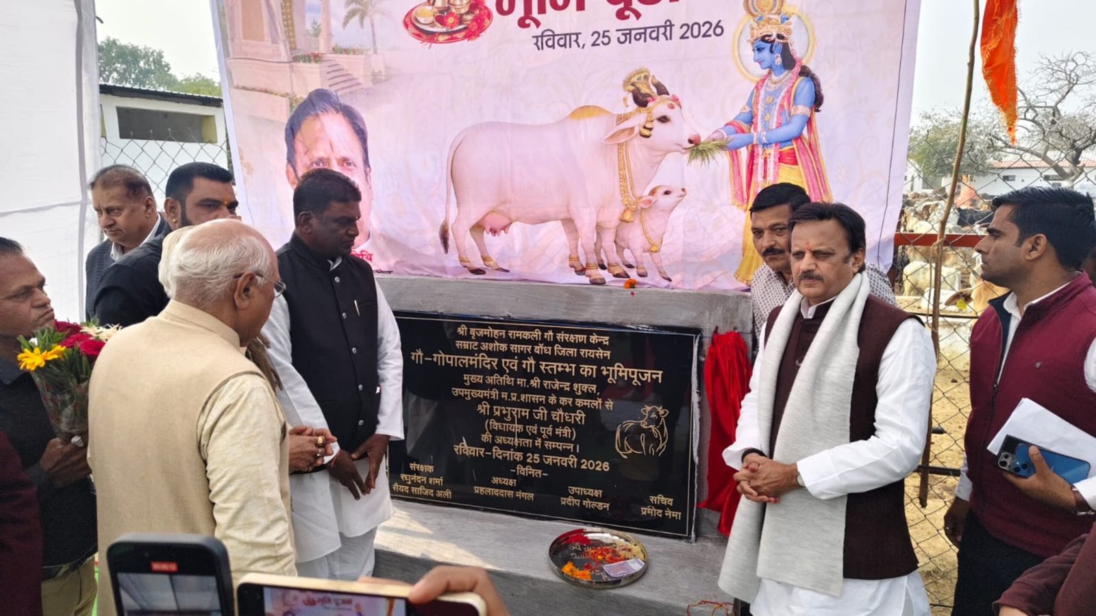 उप मुख्यमंत्री श्री शुक्ल ने बृजमोहन रामकली गौ-संरक्षण केन्द्र में गौ-गोपाल मंदिर तथा गौ-स्तंभ निर्माण कार्य का किया भूमिपूजन