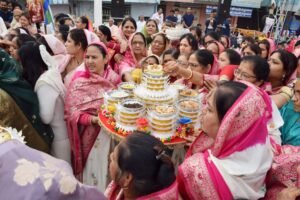 मुकेश जैन ढाना ने बताया कार्यक्रम सुबह 8 बजे शुरू हुआ आचार्य श्री के चरण मुनि श्री निष्कम्प सागर महाराज और मुनि श्री निष्काम सागर महाराज के सानिध्य में शोभा यात्रा के रूप में नगर के प्रमुख मार्गो से होते हुए कार्यक्रम स्थल कीर्ति स्तंभ पर पहुंचे जहां पर चरणों का पाद प्रक्षालन हुआ उसके पश्चात ब्रह्मचारी संजीव भैया कटंगी, अंकित भैया धनेटा और अभिषेक भैया गढी ने आचार्य श्री की महापूजन संपन्न कराई नगर के लगभग दो दर्जन महिला मंडलों की सैकड़ो सदस्यों ने इस कार्यक्रम में अर्घ समर्पित कर अपने को धन्य किया।