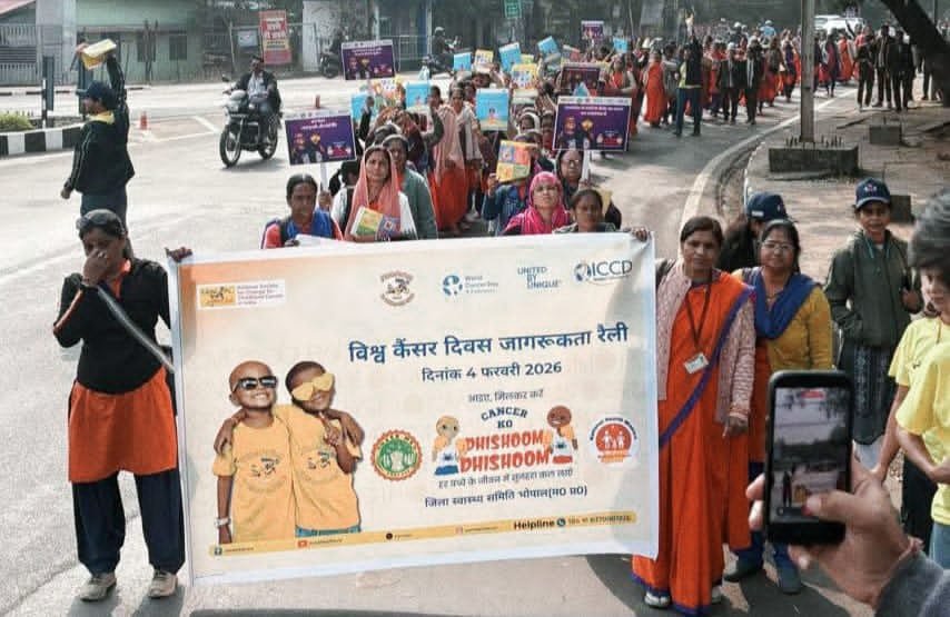 विश्व कैंसर दिवस पर 4 फरवरी को जयप्रकाश जिला चिकित्सालय से निकाली गई जागरूकता रैली को मुख्य चिकित्सा एवं स्वास्थ्य अधिकारी भोपाल डॉ मनीष शर्मा ने हरी झंडी देकर रवाना किया। रैली के माध्यम से कैंसर के विभिन्न प्रकारों, लक्षणों की पहचान और उपचार के संदेश दिए गए। कैंसर दिवस पर स्वास्थ्य संस्थाओं में आयोजित परामर्श एवं जागरूकता शिविरों में मुख, स्तन कैंसर, सर्वाइकल कैंसर तथा अन्य कैंसर के लक्षणों की जानकारी दी गई। आयुष्मान आरोग्य मंदिरों में तंबाकू के दुष्प्रभावों एवं कैंसर जागरूकता हेतु प्रश्नोत्तरी, रैली निबंध एवं चित्रकला प्रतियोगिता आयोजित की गई । जयप्रकाश चिकित्सालय में आयोजित जागरूकता कार्यक्रम में कैन किड्स किड्स कैन संस्था के प्रतिनिधियों द्वारा चाइल्डहुड कैंसर की जानकारी दी गई। संस्था द्वारा जन्म से 19 साल तक के बच्चों को उपचार के दौरान निःशुल्क आवास, पोषण सहायता, शिक्षा, मनोवैज्ञानिक परामर्श, चिकित्सकीय जांच–इलाज में सहयोग तथा सरकारी योजनाओं के माध्यम से मिलने वाले आर्थिक लाभ दिलाने में पूर्ण सहायता प्रदान की जाती है।संस्था के स्टेट प्रोजेक्ट मैनेजर सौरभ सिंह चौहान ने बताया कि बाल कैंसर के लक्षणों को सही समय पर पहचान और उपचार से 70 से 90 प्रतिशत बच्चों को पूर्ण रूप से स्वस्थ किया जा सकता है। मुख्य चिकित्सा एवं स्वास्थ्य अधिकारी भोपाल डॉ मनीष शर्मा ने बताया कि आयुष्मान आरोग्य मंदिर स्तर तक कैंसर के प्रारंभिक लक्षणों की पहचान की जा रही है। जिला चिकित्सालय में सी टी स्कैन और एम आर आई जैसी उच्चस्तरीय जांच सुविधाएं उपलब्ध हैं। मरीज में कैंसर के संभावित लक्षण देखने पर असंचारी रोग नियंत्रण कार्यक्रम के अंतर्गत निशुल्क उपचार दिया जाता है ।