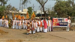 शोभायात्रा में चैतन्य शंकर जी की झांकी सजाई गई 6 फीट ऊंचे शिवलिंग की स्थापना कर पूरे नगर में भ्रमण किया गया एवं चैतन्य शंकर जी और पार्वती जी ने सभी को आशीर्वाद से भरपूर किया ।