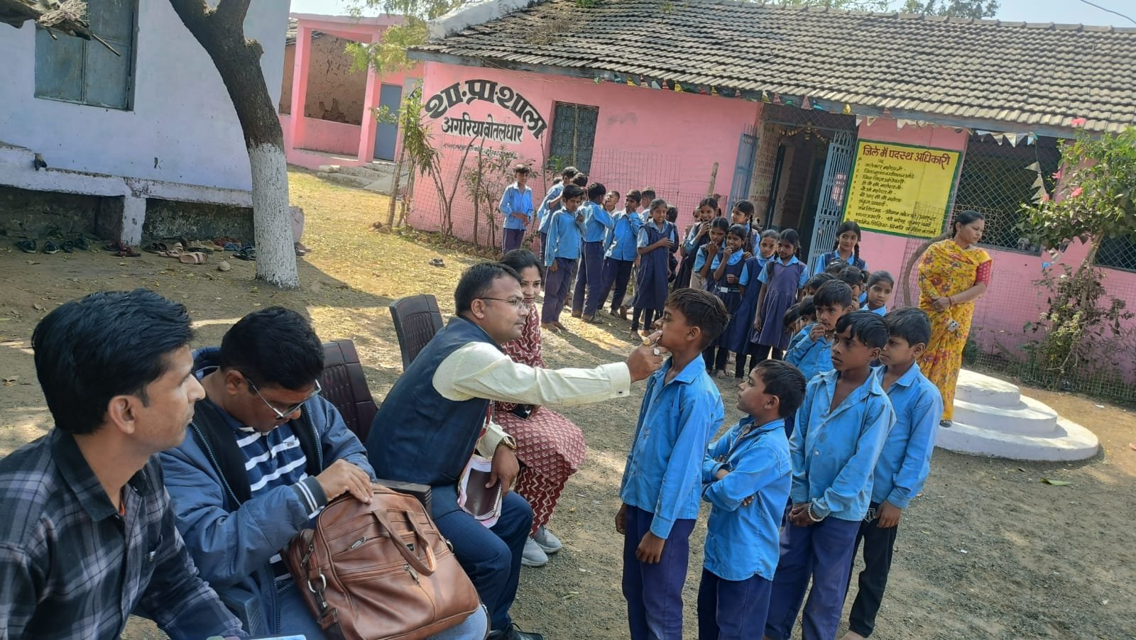 बच्चे जिस स्रोत का पानी पी रहे हैं उनके पानी का सैंपल लिया गया जिनकी जांच जिला फ्लोरोसिस लैब जिला चिकित्सालय में की जाएगी साथ ही सभी संभावित डेंटल फ्लोरोसिस से प्रभावित बच्चों को चिन्हित कर लिया गया एवं आवश्यक उपचार के रूप में टीम द्वारा कैल्शियम विटामिन सी एवं मल्टीविटामिन की दवाइयां उपलब्ध कराई गई साथ ही डॉ भारती के द्वारा ग्रामीणों एवं स्कूल शिक्षकों तथा बच्चों को विस्तार से फ्लोरोसिस बीमारी एवं तम्बाकू के बारे में पेंपलेट पोस्टर के माध्यम से बताकर जागरूक किया एवं फ्लोरोसिस बीमारी से बचने के उपाय बताए गए जिसमें बताया गया कि दवाइयों के साथ-साथ अपने दैनिक जीवन में दूध दही एवं हरी सब्जियों का इस्तेमाल ज्यादा करें एवं पीने के पानी में 1 पीपीएम से ज्यादा फ्लोराइड वाले पानी का इस्तेमाल पीने में ना करें अगर आप 1पीपीएम से ज्यादा फ्लोराइड वाले पानी का इस्तेमाल पीने में करते हे व्यक्ति फ्लोरोसिस से ग्राशित हो सकता हे जिसमें तीन प्रकार के फ्लोरोसिस रोग हो सकते हे