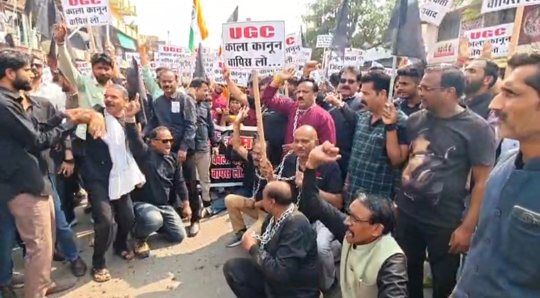 सवर्ण समाज ने रैली के रूप में यूजीसी बिल वापस लो के नारे लगाते हुए “यूजीसी के विरोध में सवर्ण समाज क्रोध में” के नारे लगाते हुए भाजपा कार्यालय पहुंचकर अपने बच्चों को प्रतीकात्मक रूप से जिला अध्यक्ष राकेश शर्मा के पास बच्चों को जमा किया। वहीं भाजपा जिला अध्यक्ष राकेश शर्मा और भाजपाइयों ने फूल बरसाकर उनका स्वागत किया।सवर्ण समाज का कहना है कि जो यूजीसी का काला कानून है इसको सरकार को तत्काल वापस लेना चाहिए नहीं तो सवर्ण समाज उग्र आंदोलन करेगा वही आपको बता दे कि सवर्ण समाज ने सैकड़ो की संख्या में शक्ति प्रदर्शन किया ।