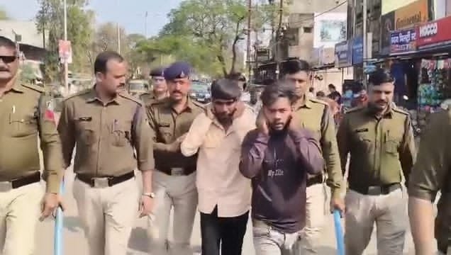 पुलिस आरक्षक से अभद्रता के बाद देहात थाना पुलिस दोनों आरोपियों को कान पकड़कर माफी मंगवाते हुए थाना परिसर से न्यायालय तक पैदल ले गई। आरक्षक से अभ्रदता की वारदात झांसी तिराहा स्थित शराब की दुकान के पास हुई थी। जुलूस के दौरान, दोनों आरोपी कान पकड़कर अपराध करना पाप है, पुलिस हमारी बाप है, कहते हुए दिखे।