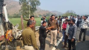 – ट्रक चालक की मौत,चालक को जेसीबी मशीन से बाहर निकाला