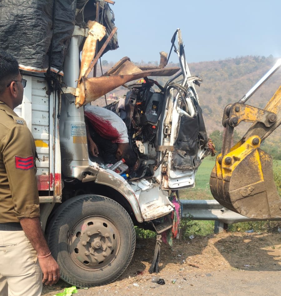 – ट्रक चालक की मौत,चालक को जेसीबी मशीन से बाहर निकाला