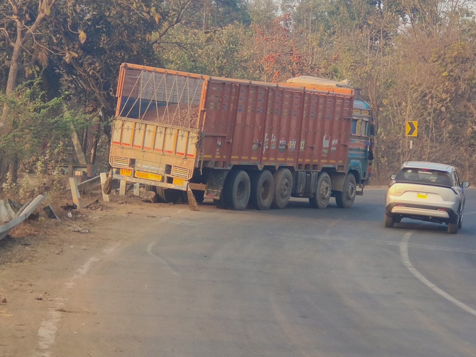 जानकारी के अनुसार ट्रक विदिशा से भोपाल की ओर जा रहा था। घाट चढ़ते समय ब्रेक फेल होते ही वाहन अनियंत्रित होकर पीछे ढलान पर लुढ़कने लगा। स्थिति भांपते हुए क्लीनर ने तुरंत पीछे के पहियों में पत्थर अड़ाए, जबकि ट्रक रेलिंग से टकराकर अटक गया। इससे ट्रक खाई में गिरने से बच गया, अन्यथा बड़ा हादसा हो सकता था।