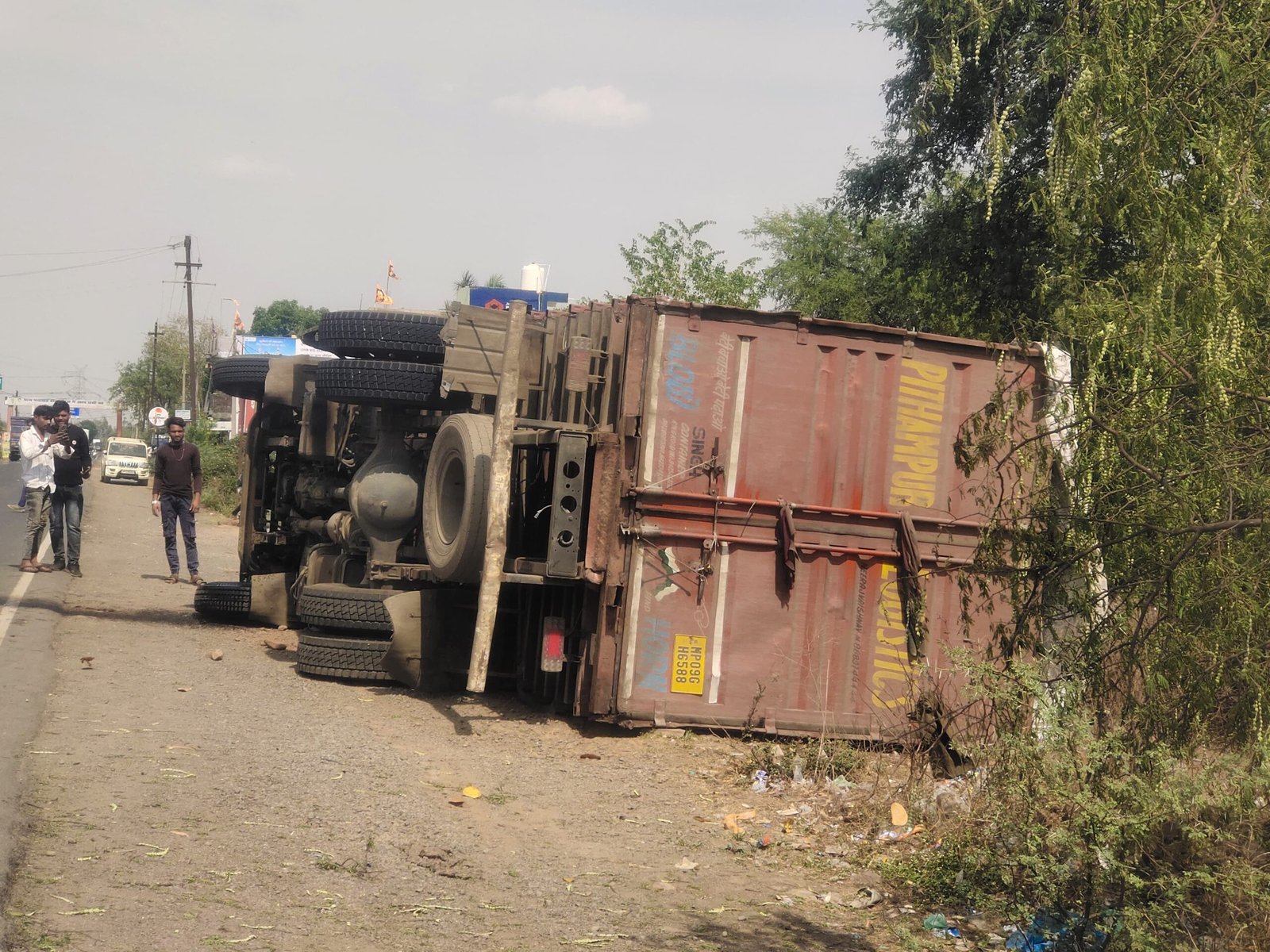 दूसरी घटना दीवानगंज कलारी के सामने हुई, जहां पीतमपुर से बगरोद जा रहा ट्रक (एमपी 09 जीएच 6588) हाईवे 18 पर अनियंत्रित होकर बाबुल के पेड़ से टकराकर पलट गया। ट्रक में भरा नए इंजन का सामान सड़क किनारे बिखर गया। हादसे में कोई जनहानि नहीं हुई, लेकिन पेड़ पूरी तरह उखड़ गया। प्रत्यक्षदर्शियों के अनुसार पेड़ के पास खड़ा एक व्यक्ति बाल-बाल बच गया।