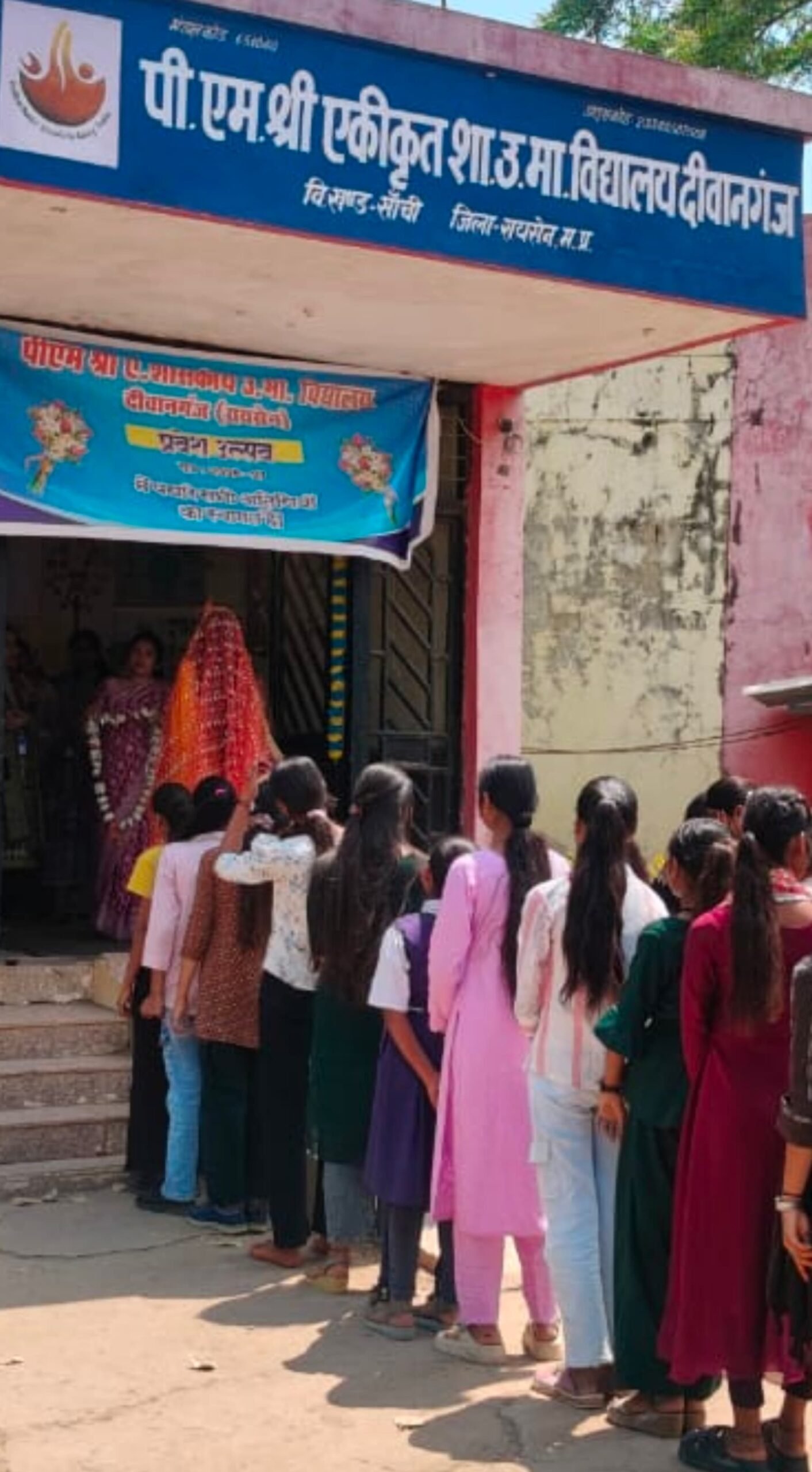 सांची ब्लॉक के  पीएम श्री शासकीय उच्चतर माध्यमिक विद्यालय , माध्यमिक शाला, एकीकृत कन्या शालादीवानगंज और माध्यमिक शाला अंबाडी, नरखेड़ा, जमुनिया, निनोद, बरजोरपुर, सरार, कयामपुर, संग्रामपुर, करैया, गिदगढ़, बालमपुर, देहरी,में बुधवार को प्रवेश उत्सव कार्यक्रम धूम धाम से मनाया गया, इस अवसर पर ग्राम पंचायत दीवानगंज के उपसरपंच शमीम खान मुख्य अतिथि के रूप मै शामिल हुए, संकुल प्रभारी प्राचार्य श्रीमती प्रीति कहार द्वारा मां सरस्वती की मूर्ति पर माल्यार्पण कर कार्यक्रम की शुरुआत की गई।