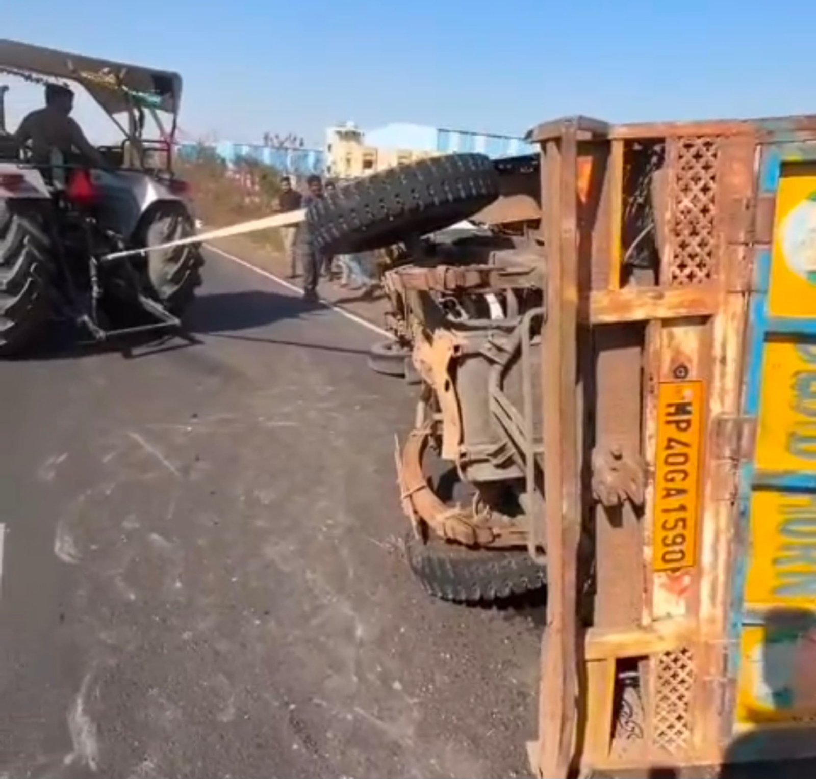 भोपाल-विदिशा हाईवे 18 पर फिर हादसा, अनियंत्रित होकर पलटी बोलेरो पिकअप, 1 महीने में 15 किलोमीटर मार्ग पर 26 हादसे