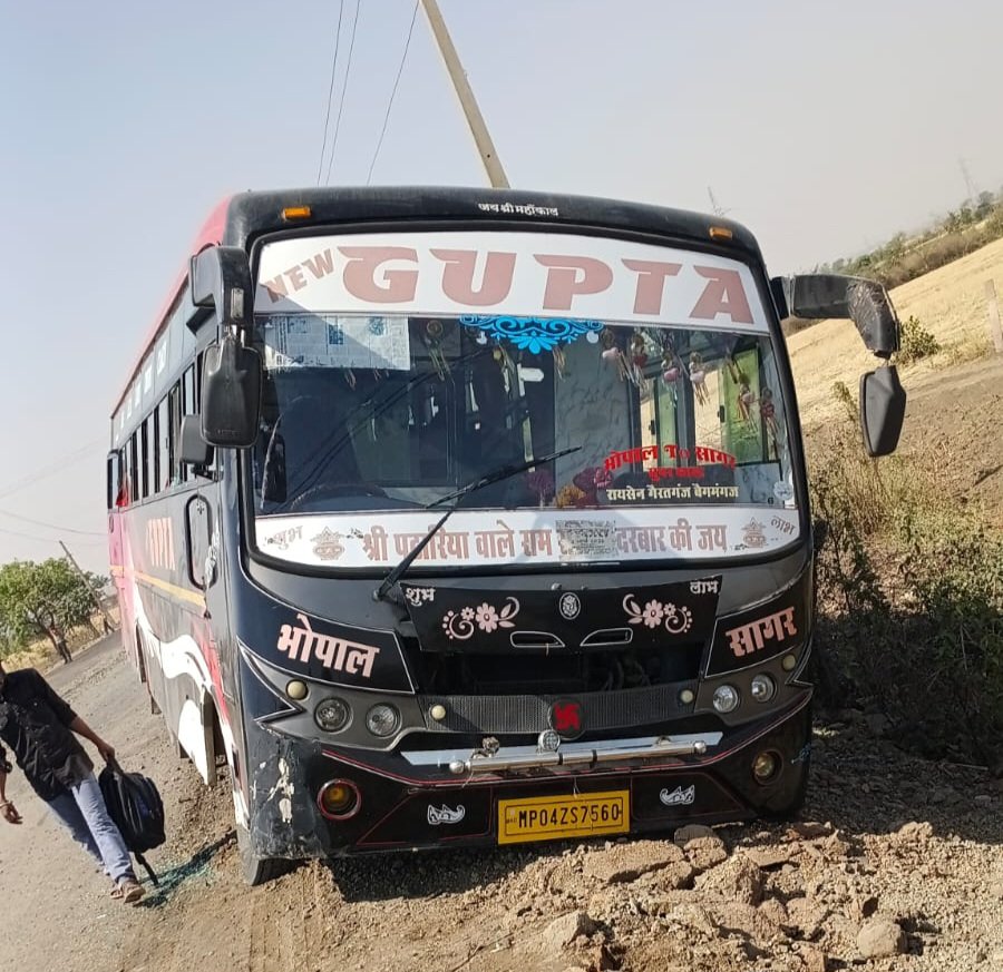गुप्ता बस सर्विस की एक बस भोपाल से सागर जा रही थी जिसमें 35 यात्री सवार थे। दूसरी बस को क्रॉस करते समय अनियंत्रित होकर सड़क से नीचे उतर गई जिसमें एक यात्री को ज्यादा ओर कुछ यात्रियों को मामूली चोट आई है।