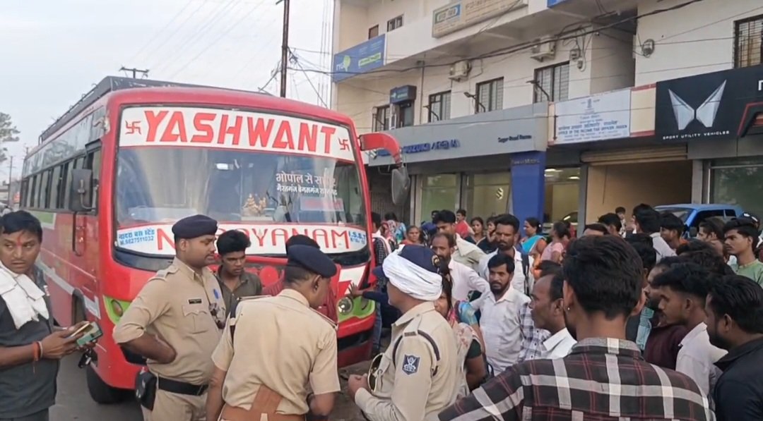 रायसेन । शनिवार शाम 6 एक ओवरलोड बस ने सड़क पार कर रहे एक बुजुर्ग को टक्कर मार दी। हादसे में बुजुर्ग मोहन रैकवार गंभीर रूप से घायल हो गए। घटना के बाद बस का चालक और क्लीनर मौके से फरार हो गए, जबकि यात्रियों और स्थानीय लोगों ने बस रोककर विरोध प्रदर्शन किया।