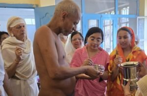 आज आचार्य विद्यासागर जैन पाठशाला के बच्चों ओर समाज के लोगो के द्वारा मुनि श्री को नवधा भक्ति के साथ आहार दिया और बच्चों ने कई नियम भी लिया ।मुनि श्री ने पाठशाला के बच्चों को विशेष आशीर्वाद दिया,साथ ही आज जैन समाज द्वारा पूरे नगर की जनता को गन्ने का रस का वितरण किया गया।जिसका संयोजक मुकेश जैन अजमेरा,आनंद जैन पांड्या ने बताया कि सभी श्रावक गण को भगवान के आहार की खुशी में इक्षुरस वितरण किया गया है।