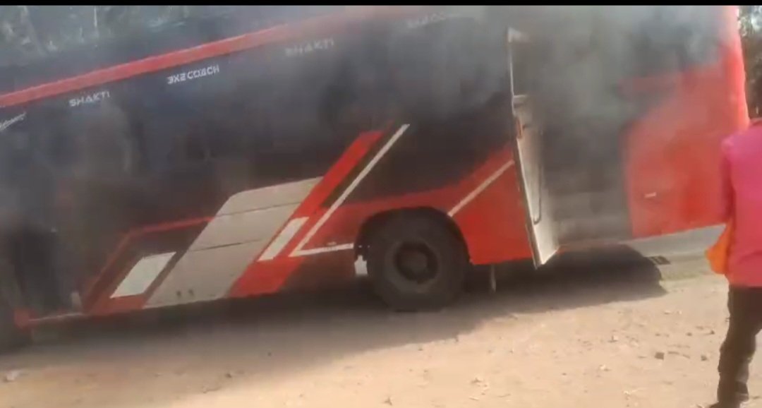 भोपाल मार्ग पर टला बड़ा हादसा, शक्ति ट्रेवल्स की बस में लगी आग